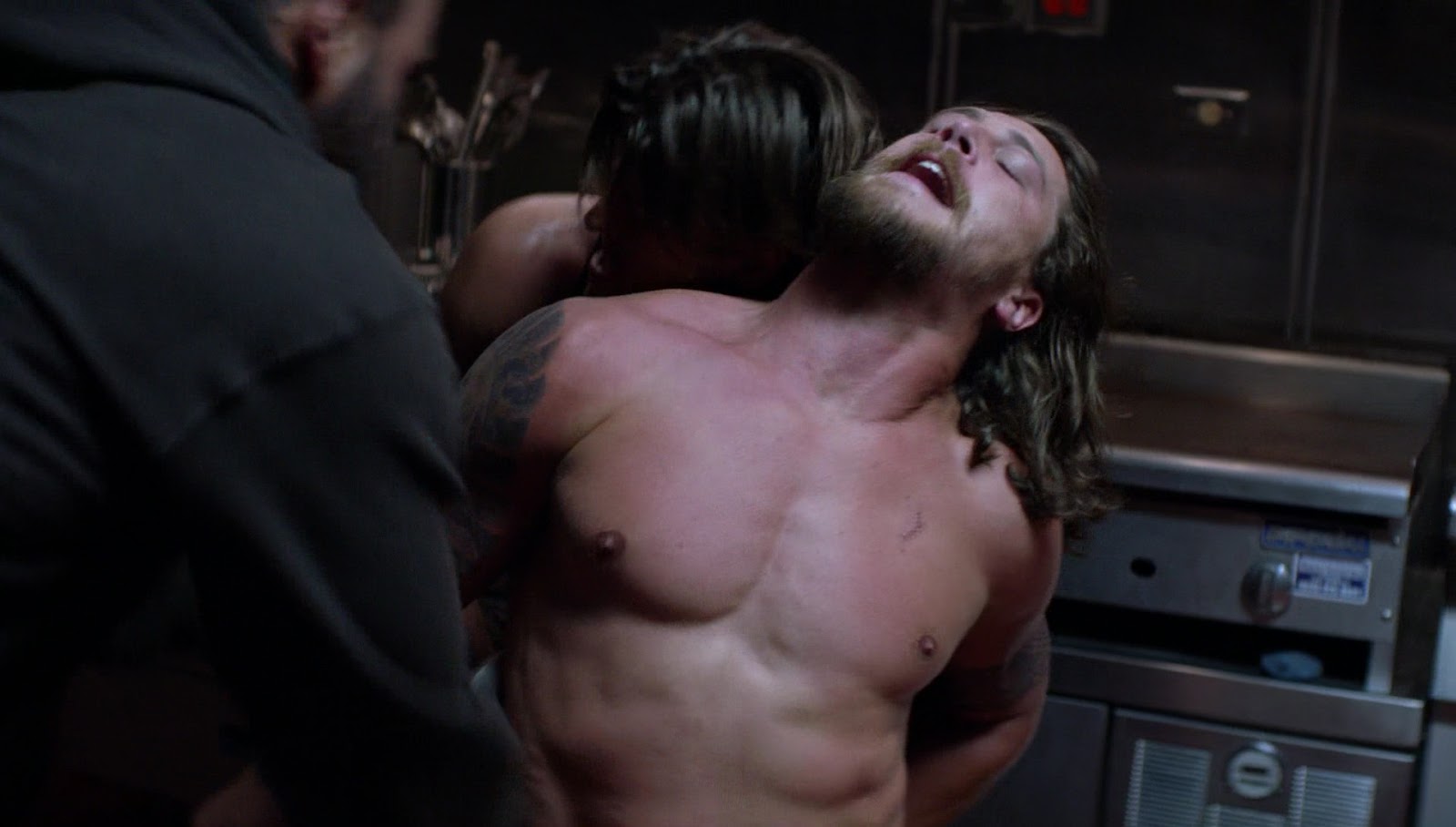 Storyline: Renn's buddies jump to Craig while he is naked, tie his ankles together with zip ties and place him on a chair. They, next, force his hands behind the chair's back and secure each one with a zip tie to the chair, in order to inject him.