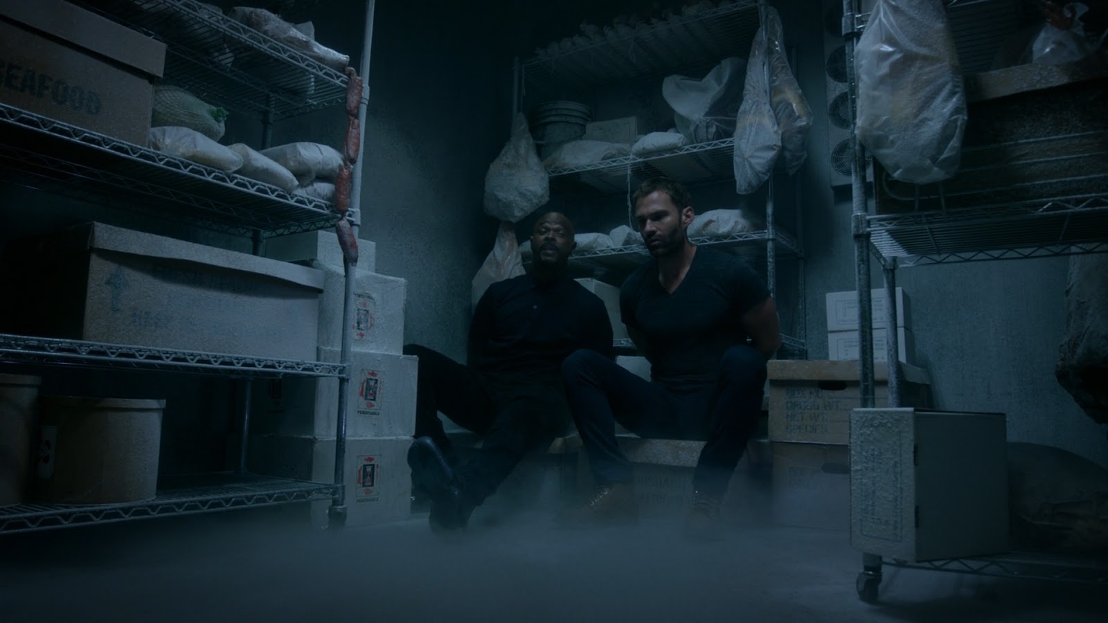 Storyline: Andrew has Cole arrested; his hands are cuffed together in front of him. Later, Murtaugh and Cole find themselves being held hostage in a walk-in freezer with their hands zip tied behind the back. Murtaugh’s left to chill while Cole is taken to be tortured.